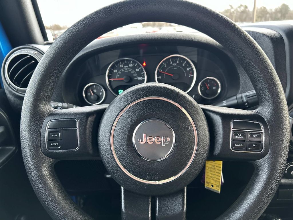 The satellite radio system in this mid-size suv gives you access to hundreds of nation-wide radio stations with a clear digital signal. This vehicle is a manufacturer certified pre-owned vehicle. Set the temperature exactly where you are most comfortable in it. The fan speed and temperature will automatically adjust to maintain your preferred zone climate. Impresses the most discerning driver with the deep polished blue exterior on this mid-size suv. When you encounter slick or muddy roads, you can engage the four wheel drive on the Jeep Wrangler and drive with confidence. The vehicle has a V6, 3.6L high output engine. The fog lights cut through the weather so you can see what's ahead. Enjoy the tried and true gasoline engine in this mid-size suv. This mid-size suv features cruise control for long trips. Anti-lock brakes will help you stop in an emergency. This 2016 Jeep Wrangler comes with a manual transmission.