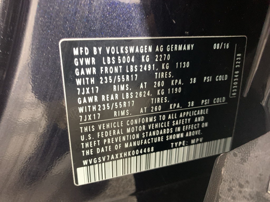 This unit features a hands-free Bluetooth phone system. The vehicle is a manufacturer certified pre-owned vehicle. The leather seats in this Volkswagen Tiguan are a must for buyers looking for comfort, durability, and style. Protect this unit from unwanted accidents with a cutting edge backup camera system. Set the temperature exactly where you are most comfortable in the vehicle. The fan speed and temperature will automatically adjust to maintain your preferred zone climate. It is equipped with all wheel drive. Control your garage door with its built in HomeLink System. This 2017 Volkswagen Tiguan has a 4 Cyl, 2.0L high output engine. This model has an elegant black exterior finish. The vehicle features cruise control for long trips. Help alleviate lower back pain with the driver seat lumbar support in this Volkswagen Tiguan. Enjoy the tried and true gasoline engine in the Volkswagen Tiguan. The Electronic Stability Control will keep you on your intended path.