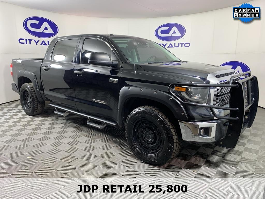 See what's behind you with the back up camera on this 2019 Toyota Tundra . Good News! This certified CARFAX 1-owner vehicle has only had one owner before you. The state of the art park assist system will guide you easily into any spot. Bluetooth technology is built into this Toyota Tundra, keeping your hands on the steering wheel and your focus on the road. The vehicle enhances safety with a blind spot monitor, alerting drivers to potential dangers in adjacent lanes. Our dealership has already run the CARFAX report and it is clean. A clean CARFAX is a great asset for resale value in the future. It warns of approaching vehicles with Cross-Traffic Alert. This model is a manufacturer certified pre-owned vehicle. This unit is painted with a sleek and sophisticated black color. This 1/2 ton pickup has a V8, 5.7L high output engine. When you encounter slick or muddy roads, you can engage the four wheel drive on this model and drive with confidence.
