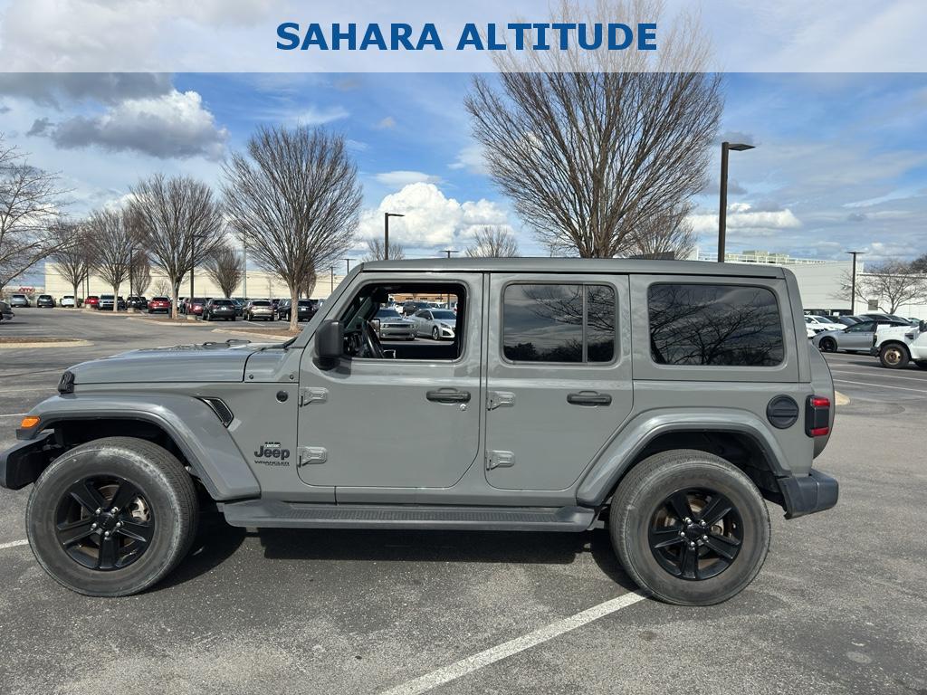 Discover rugged style and modern comfort with this certified pre-owned 2020 Jeep Wrangler Sahara Altitude 4WD, located in Murfreesboro, TN. Powered by a fuel-efficient 2.0L 4-cylinder gasoline engine and a smooth automatic transmission, this Jeep Wrangler blends off-road capability with everyday drivability. The Altitude trim adds striking black exterior accents and premium features for a bold, refined look.