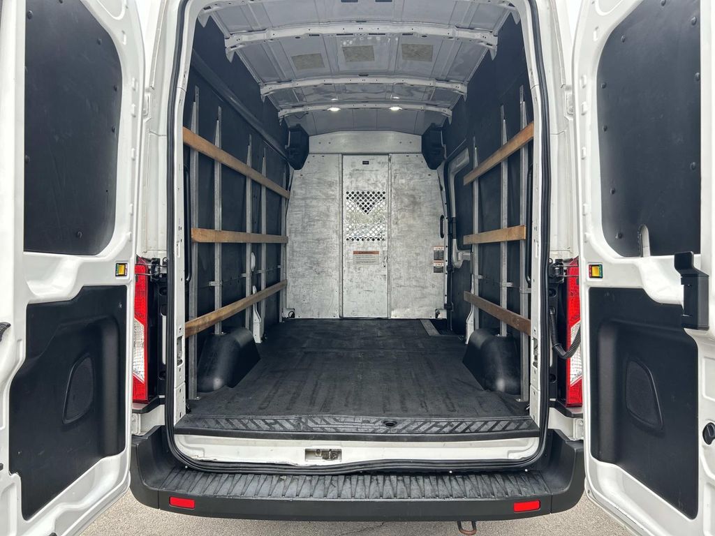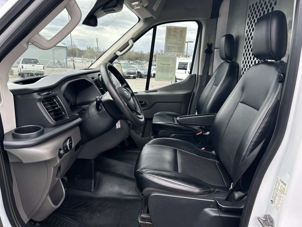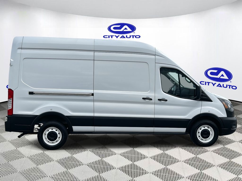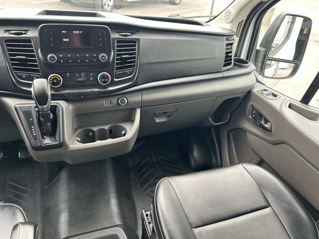 Plus, it has ample towing capacity. Anti-lock brakes are standard on this model. The high efficiency automatic transmission shifts smoothly and allows you to relax while driving. See what's behind you with the back up camera on the vehicle. This model has a clean CARFAX vehicle history report. The vehicle is a manufacturer certified pre-owned vehicle. Maintaining a stable interior temperature in this 2021 Ford Transit Van T-250 High Roof Slide is easy with the climate control system. The vehicle features cruise control for long trips. Electronic Stability Control is one of many advanced safety features on this unit. The Ford Transit Van has a V6, 3.5L high output engine. Front and rear side curtain airbags are included on this 3/4 ton van. This vehicle is equipped with front air bags. Stay safe with additional front side curtain airbags. It can run on either gasoline or E85 fuel. Bluetooth technology is built into this vehicle, keeping your hands on the steering wheel and your focus on the road. With the keyless entry system on it you can pop the trunk without dropping your bags from the store. The vehicle is rear wheel drive. This vehicle has an adjustable telescoping wheel that allows you to achieve a perfect fit for your driving comfort. The traction control system on the Ford Transit Van instantly senses tire slippage and executes minute power adjustments to maintain traction at all speeds. This model embodies class and sophistication with its refined white exterior.