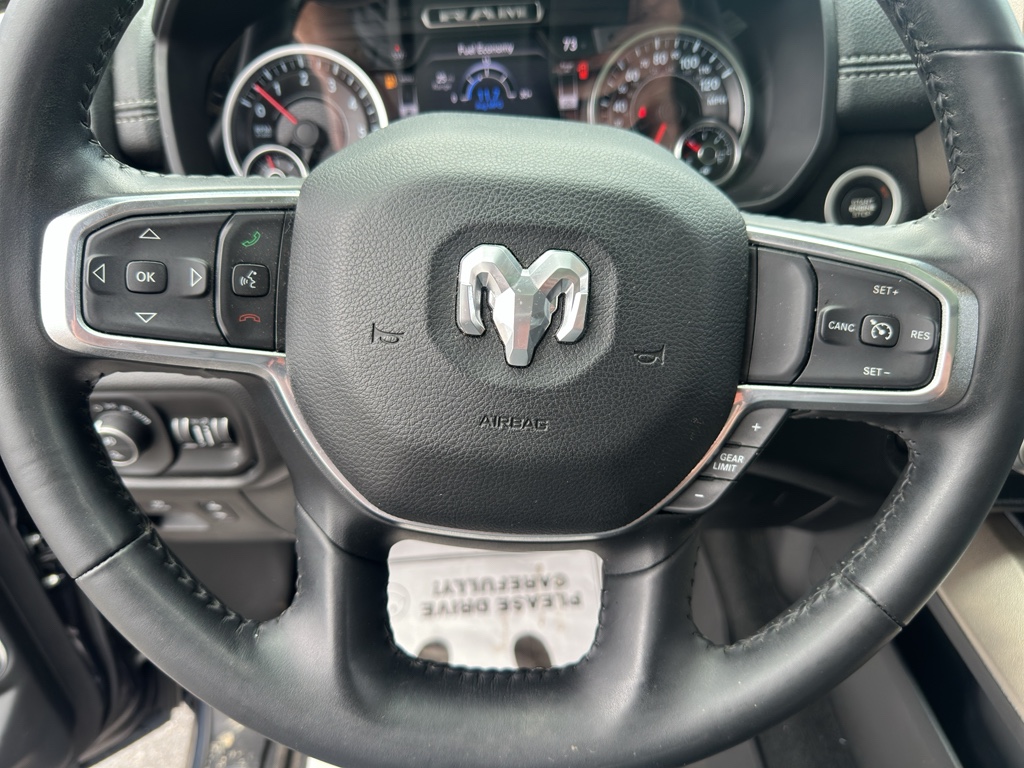 Half ton trucks are the most functional trucks for all purposes. This 1/2 ton pickup has four wheel drive capabilities. This 1/2 ton pickup comes equipped with Android Auto for seamless smartphone integration on the road. It offers Apple CarPlay for seamless connectivity. The Ram 1500 keeps you comfortable with Auto Climate. This 1/2 ton pickup has an automatic transmission. See what's behind you with the back up camera on this unit. This vehicle is a certified CARFAX 1-owner. Our dealership has already run the CARFAX report and it is clean. A clean CARFAX is a great asset for resale value in the future. This unit has gone through a stringent manufacturer pre-owned certification process, including a meticulous mechanical and reconditioning processes. Take the stress out of car buying with this certified pre-owned. Maintaining a stable interior temperature in this Ram 1500 is easy with the climate control system. The Ram 1500 features cruise control for long trips. Electronic Stability Control is one of many advanced safety features on this vehicle. This 1/2 ton pickup has a V8, 5.7L high output engine. The vehicle's Forward Collision Warning system alerts the driver to potential front-end collisions, enhancing safety. It is equipped with a gasoline engine. It projects refinement with a racy metallic gray exterior. Bluetooth technology is built into this Ram 1500, keeping your hands on the steering wheel and your focus on the road. Keep your hands warm all winter with a heated steering wheel in the Ram 1500 . The leather seats in this Ram 1500 are a must for buyers looking for comfort, durability, and style. With the adjustable lumbar support in this unit your back will love you. You'll never again be lost in a crowded city or a country region with the navigation system on this unit. The rear parking assist technology on it will put you at ease when reversing. The system alerts you as you get closer to an obstruction. Start the Ram 1500 from inside with remote start. The premium quality running boards make it easier to get in and out of this 2021 Ram 1500 and give it a nice look too. A trailer braking system is already installed on this unit. with XM/Sirus Satellite Radio you are no longer restricted by poor quality local radio stations while driving this Ram 1500. Anywhere on the planet, you will have hundreds of digital stations to choose from.