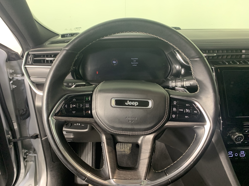 When you encounter slick or muddy roads, you can engage the four wheel drive on it and drive with confidence. This vehicle has auto-adjust speed for safe following. This mid-size suv offers Android Auto for seamless smartphone integration. This 2022 Jeep Grand Cherokee L offers Apple CarPlay for seamless connectivity. The high efficiency automatic transmission shifts smoothly and allows you to relax while driving. See what's behind you with the back up camera on the vehicle. The vehicle has a clean CARFAX vehicle history report. This unit is a manufacturer certified pre-owned vehicle. Set the temperature exactly where you are most comfortable in this model. The fan speed and temperature will automatically adjust to maintain your preferred zone climate. Easily set your speed in it with a state of the art cruise control system. Increase or decrease velocity with the touch of a button. This 2022 Jeep Grand Cherokee L has a V6, 3.6L high output engine. This unit's Forward Collision Warning feature alerts drivers to potential front-end collisions. Enjoy the tried and true gasoline engine in this model. Bluetooth technology is built into it, keeping your hands on the steering wheel and your focus on the road. It is pure luxury with a heated steering wheel. The leather seats in this model are a must for buyers looking for comfort, durability, and style. With the adjustable lumbar support in this unit your back will love you. This mid-sized SUV is perfect for your next adventure. You'll never again be lost in a crowded city or a country region with the navigation system on it. Load groceries and much more with ease into the vehicle thanks to the power liftgate. The vehicle comes with power adjustable seat to get your seat just right for you. Power seats are a must! Start this model from inside with remote start. The Jeep Grand Cherokee L shines with an exquisite metallic silver exterior finish.