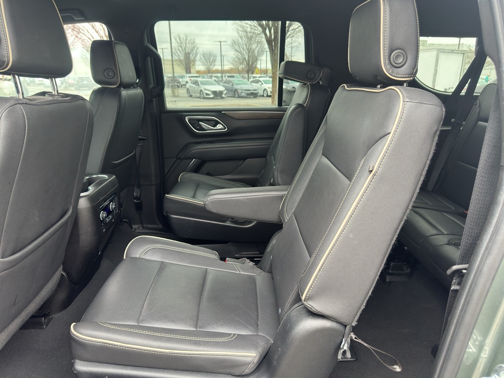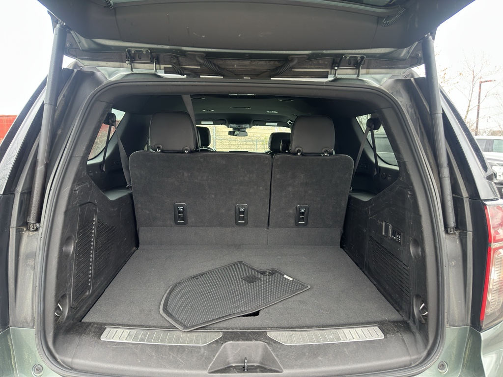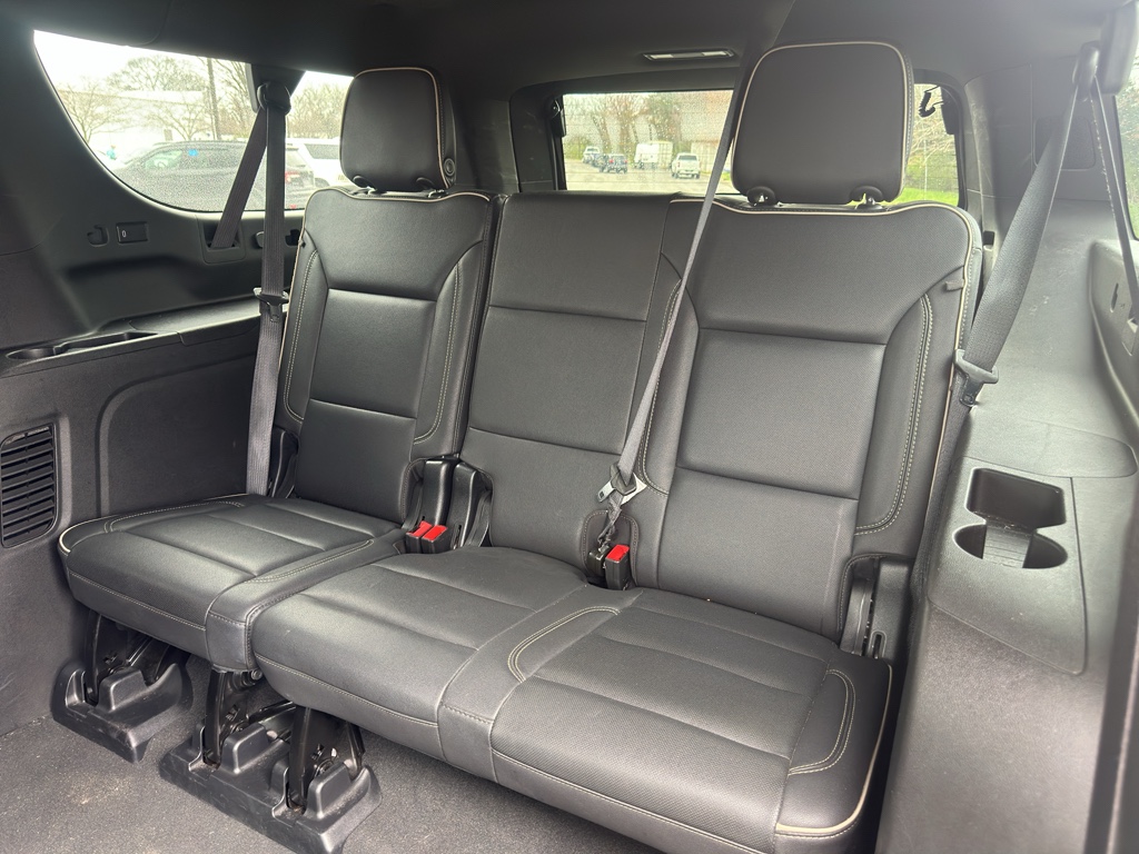 Preferred Equipment Group 1LZ: Bright Front and Rear Door Sill Plates; 20" X 9" Polished Aluminum Wheels; Memory Settings; Perforated Leather Seating Surfaces; Remote Start; 3rd Row 60/40 Power-Folding Split-Bench; Safety Alert Seat; Chrome Door Handles with Body-Color Strip; Heated Steering Wheel; LED Daytime Running Lamps; Rear Cross Traffic Alert; Driver and Front Outboard Passenger Airbags; Heated Driver and Front Passenger Seats; Wireless Charging; Front Bucket Seats; Universal Home Remote; Color-Keyed Carpeting Floor Covering; Heated 2nd Row Outboard Seats; Hands-Free Rear Power Programmable Liftgate; Chevrolet Infotainment 3 Premium System Radio; 1st and 2nd Row Color-Keyed Carpeted Floor Mats; Enhanced Driver Information Center; Floor Console; Lane Change Alert with Side Blind Zone Alert; Chrome Mirror Caps; Dual Exhaust System; SiriusXM Radio with 360L; Heated and Ventilated Driver and Front Passenger Seats; Wrapped Steering Wheel; Power Tilt and Telescopic Steering Column; Bose 10-Speaker Surround with CenterPoint; Magnetic Ride Control Suspension; Infotainment Display; Auto-Dimming Inside Rearview Mirror; Power Release 2nd Row Bucket Seats; Outside Heated Power-Adjustable Mirrors; 275/60R20SL All-Season Blackwall Tires. **Equipment listed is based on original vehicle build and subject to change. Please confirm the accuracy of the included equipment by calling the dealer prior to purchase.**