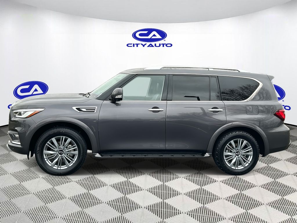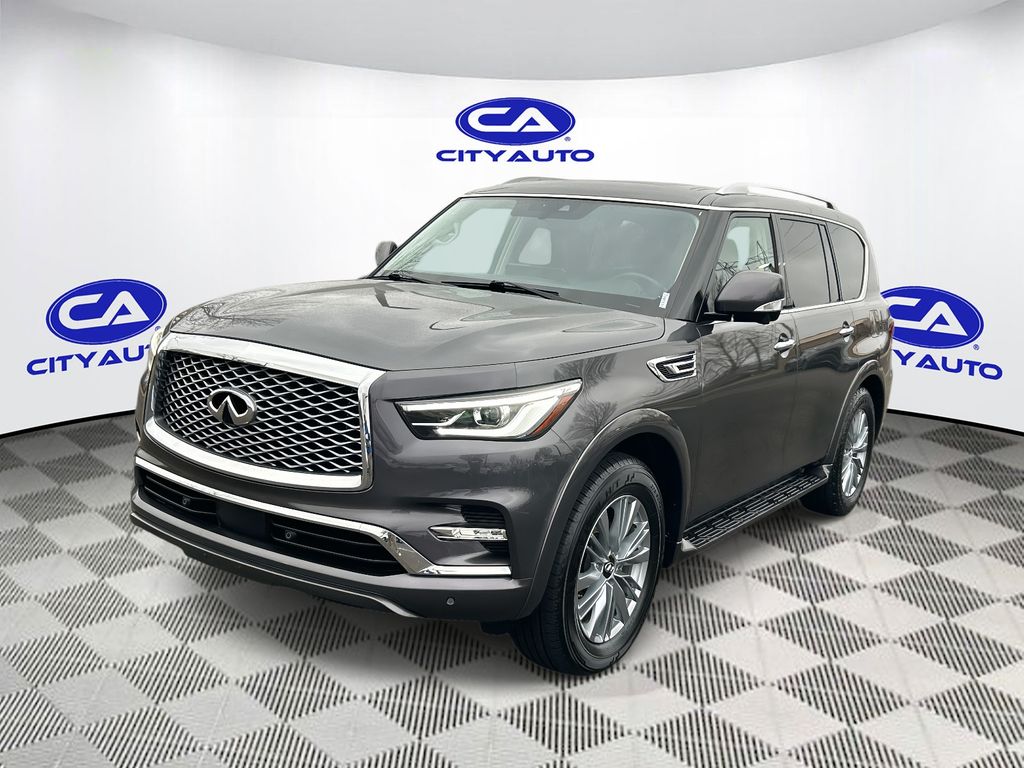 Carry lots of cargo while your passengers are comfortable. This 1/2 ton suv has four wheel drive capabilities. This unit offers Android Auto for seamless smartphone integration. This vehicle offers Apple CarPlay for seamless connectivity. The vehicle has an automatic transmission. This 1/2 ton suv features a high end BOSE stereo system. Protect this 1/2 ton suv from unwanted accidents with a cutting edge backup camera system. Good News! This certified CARFAX 1-owner vehicle has only had one owner before you. Our dealership has already run the CARFAX report and it is clean. A clean CARFAX is a great asset for resale value in the future. The vehicle has gone through a stringent manufacturer pre-owned certification process, including a meticulous mechanical and reconditioning processes. Take the stress out of car buying with this certified pre-owned. Maintaining a stable interior temperature in this model is easy with the climate control system. Easily set your speed in it with a state of the art cruise control system. Increase or decrease velocity with the touch of a button. The vehicle has a V8, 5.6L high output engine. This vehicle's Forward Collision Warning system alerts the driver to potential front-end collisions, enhancing safety. This model is equipped with a gasoline engine. This model emanates grace with its stylish gray exterior. The INFINITI QX80 features a hands-free Bluetooth phone system. The vehicle is pure luxury with a heated steering wheel. The leather seats in this 2024 INFINITI QX80 are a must for buyers looking for comfort, durability, and style. Help alleviate lower back pain with the driver seat lumbar support in this unit. The installed navigation system will keep you on the right path. Enjoy the convenience of the power liftgate on this vehicle. Start the vehicle from inside with remote start. The vehicle is equipped with the latest generation of XM/Sirius Radio.