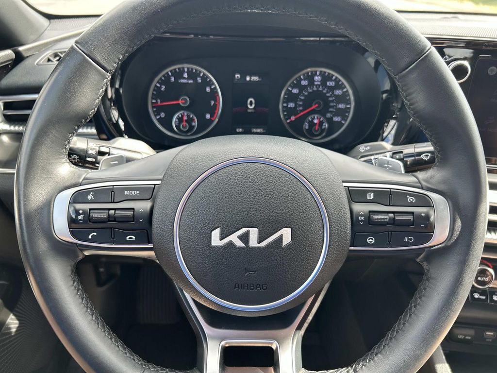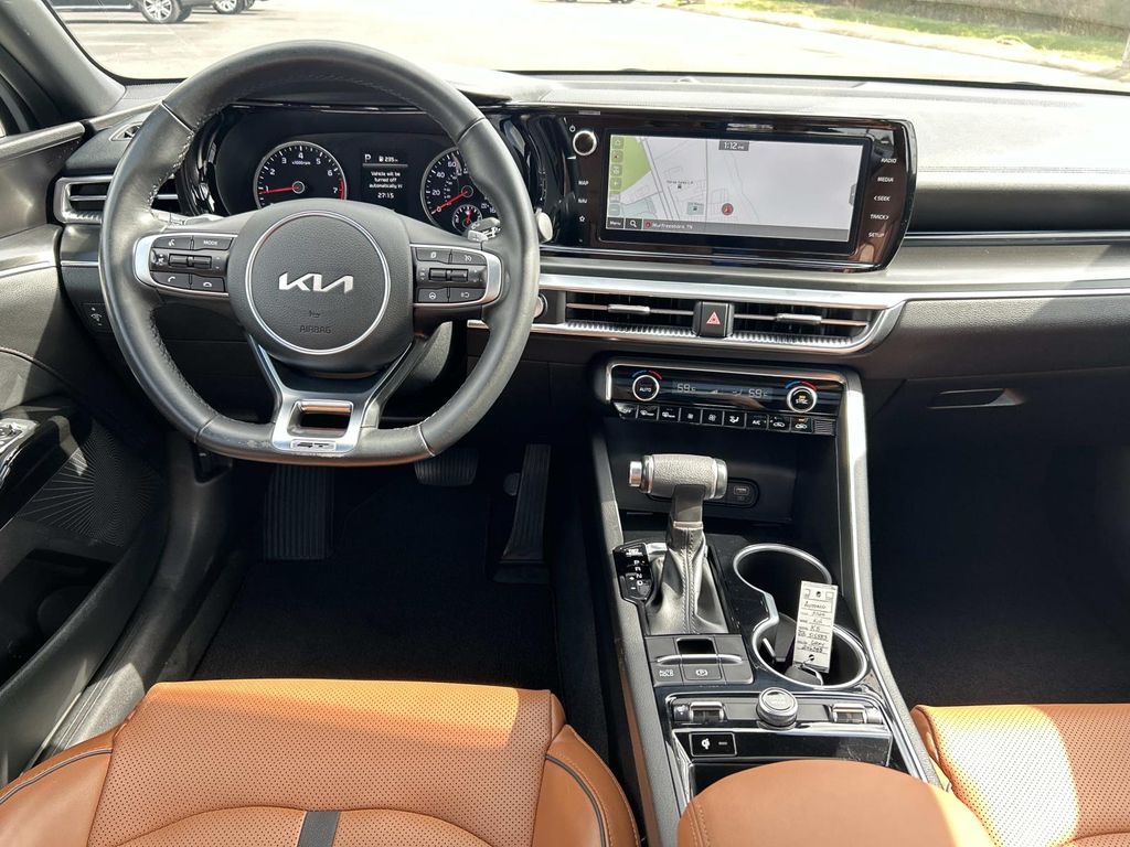 This vehicle utilizes collision avoidance to enhance safety by automatically detecting and evading potential accidents. This vehicle comes equipped with Android Auto for seamless smartphone integration on the road. Protect the Kia K5 from unwanted accidents with a cutting edge backup camera system. This model offers Apple CarPlay for seamless connectivity. Our dealership has already run the CARFAX report and it is clean. A clean CARFAX is a great asset for resale value in the future. Start this Kia K5 from inside with remote start. This mid-size car has gone through a stringent manufacturer pre-owned certification process, including a meticulous mechanical and reconditioning processes. Take the stress out of car buying with this certified pre-owned. This mid-size car features a hands-free Bluetooth phone system. This unit's Lane Departure Warning helps keep you in your lane. The installed navigation system will keep you on the right path. The leather seats in it are a must for buyers looking for comfort, durability, and style.